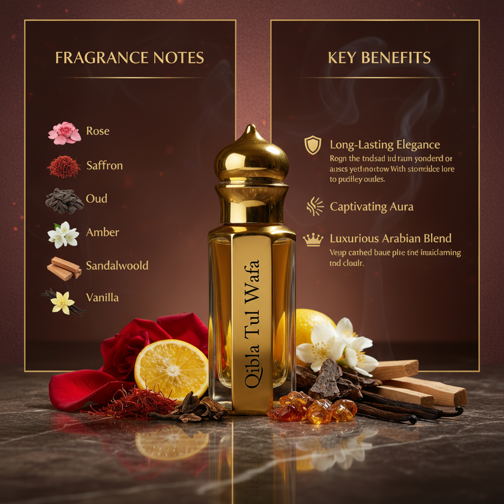 Qibla Tul Wafa Attar – A timeless expression of loyalty, devotion, and spiritual elegance. This exquisite Arabian attar captures the essence of soulful connection through a masterfully crafted blend of precious ingredients. Each note unfolds like a sacred journey, revealing layers of warmth, depth, and refined beauty that linger throughout the day.